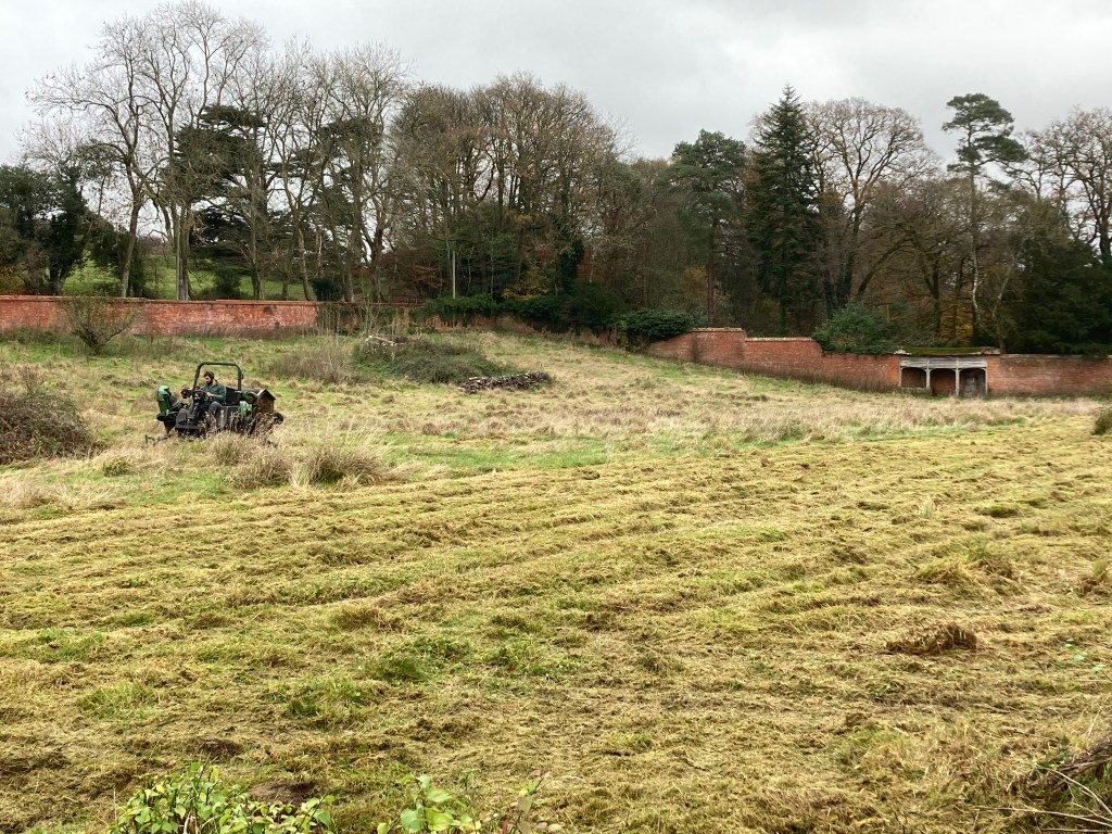 Phil Buttress is mowing the 3 acres of grass that hasn’t been cut for a few years. It has the effect of tidying up the site and making it seem less daunting, and immediately lifting our spirits.