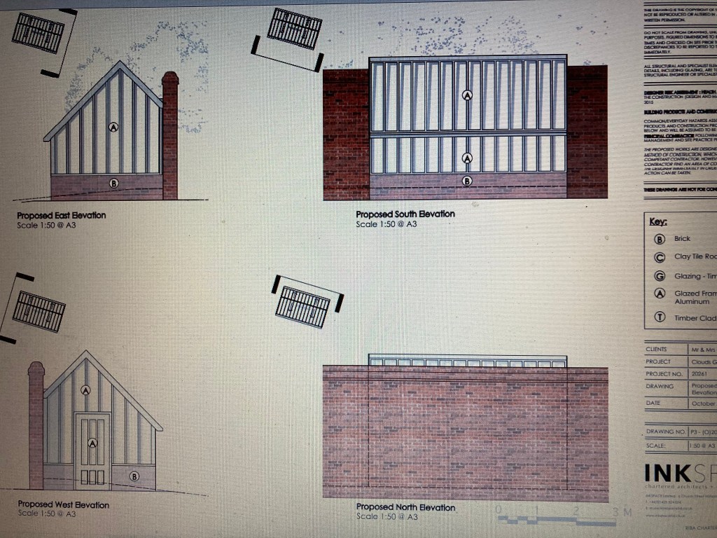 We know our architect, Lauren at Inkspace in Wimborne, through our friends and neighbours, Jeremy and Caroline in Woolacombe. The layout and design of the house by Lauren and her colleague, Phil, is progressing well. It’ll run along much of the western end of the site, mostly single-storey and covering part of the footprint of the existing bungalow. Having considered what must be every option for the external finishes, we think we’ve settled on a natural off-white render to the ground floor and zinc on the roofs and higher elevations, with some wood screening around the glazing, of which there’s lots!