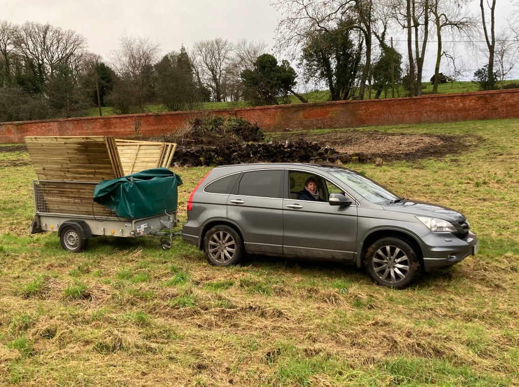 It’s been very wet this week and this has delayed progress on the fence. However this afternoon we both got stuck in again – it’s a two-person job – and managed to put in place four panels. If they don’t look straight to any of you, there’s clearly something wrong with the camera!