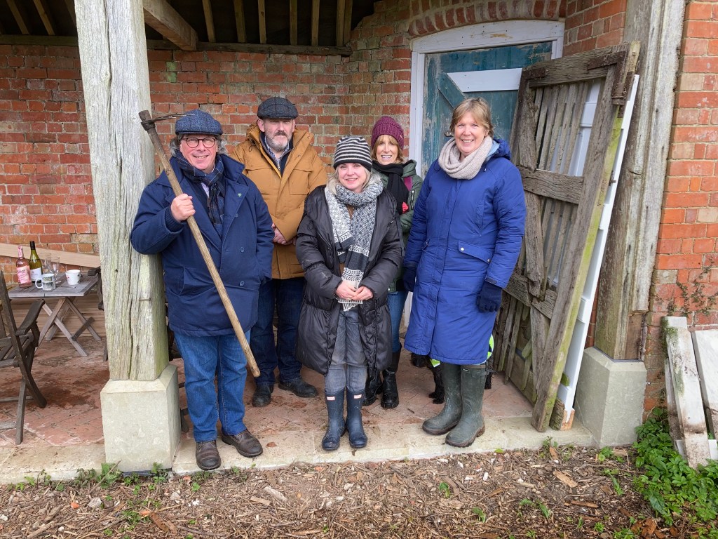 Before you start wondering, no, we didn’t get any work out of Fergus. His clutching a garden tool was a sham, and we suspect quite a novel experience for him!