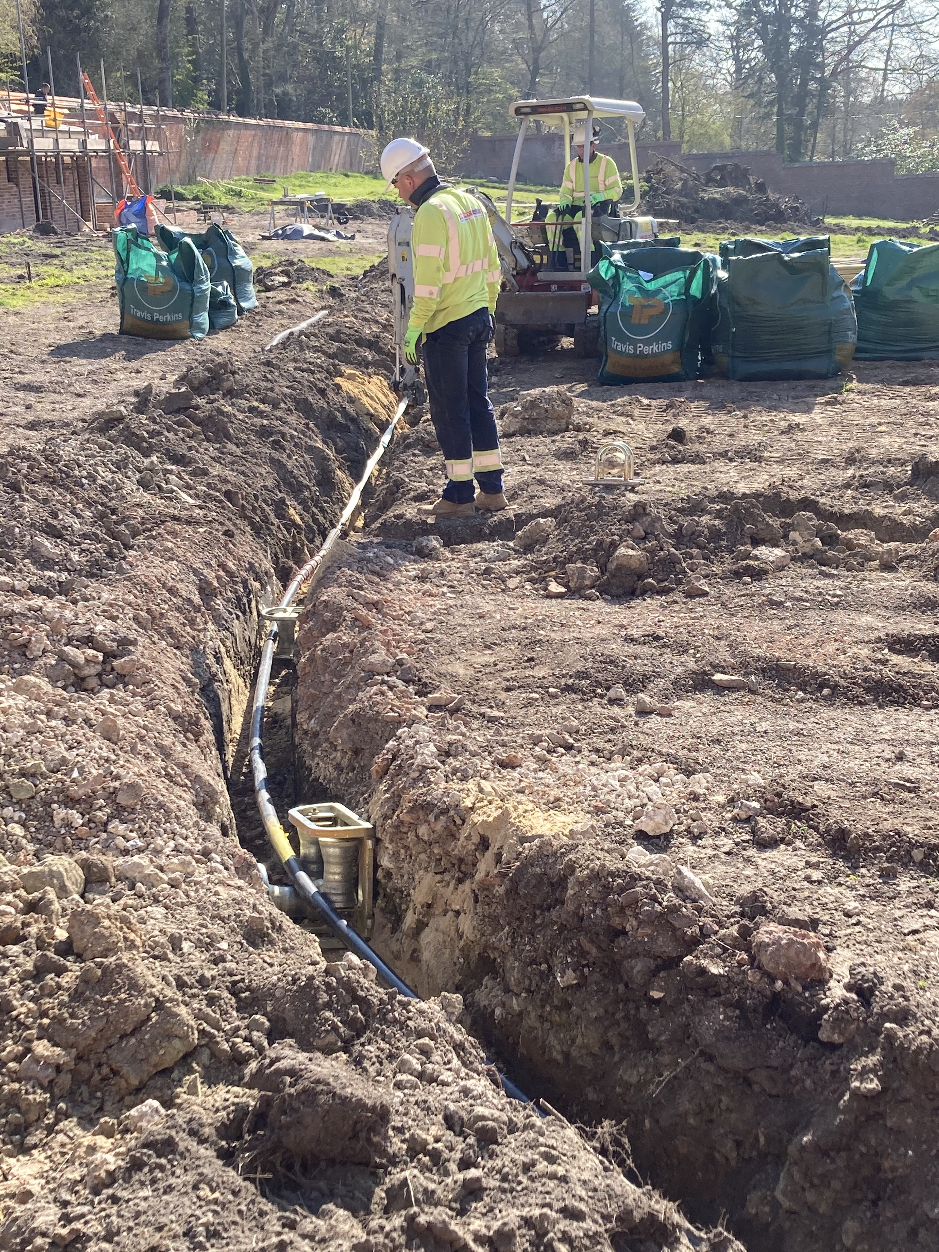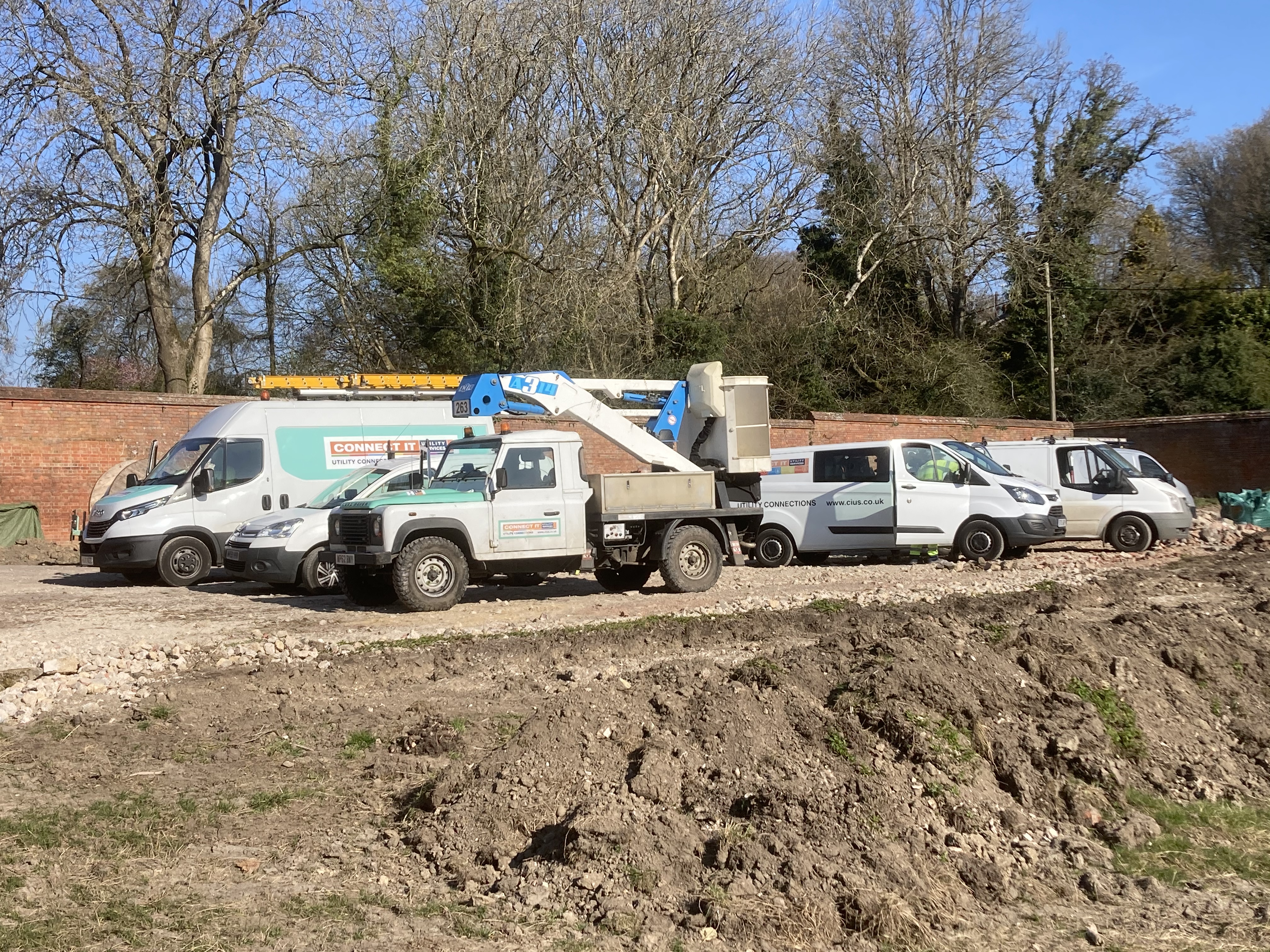 On Monday we had the largest number of workers on site so far as several teams arrived from Scottish and Southern’s contractor to start tackling the electricity cables. The parking was sufficient and the ‘welfare facilities’ coped admirably which was a relief …