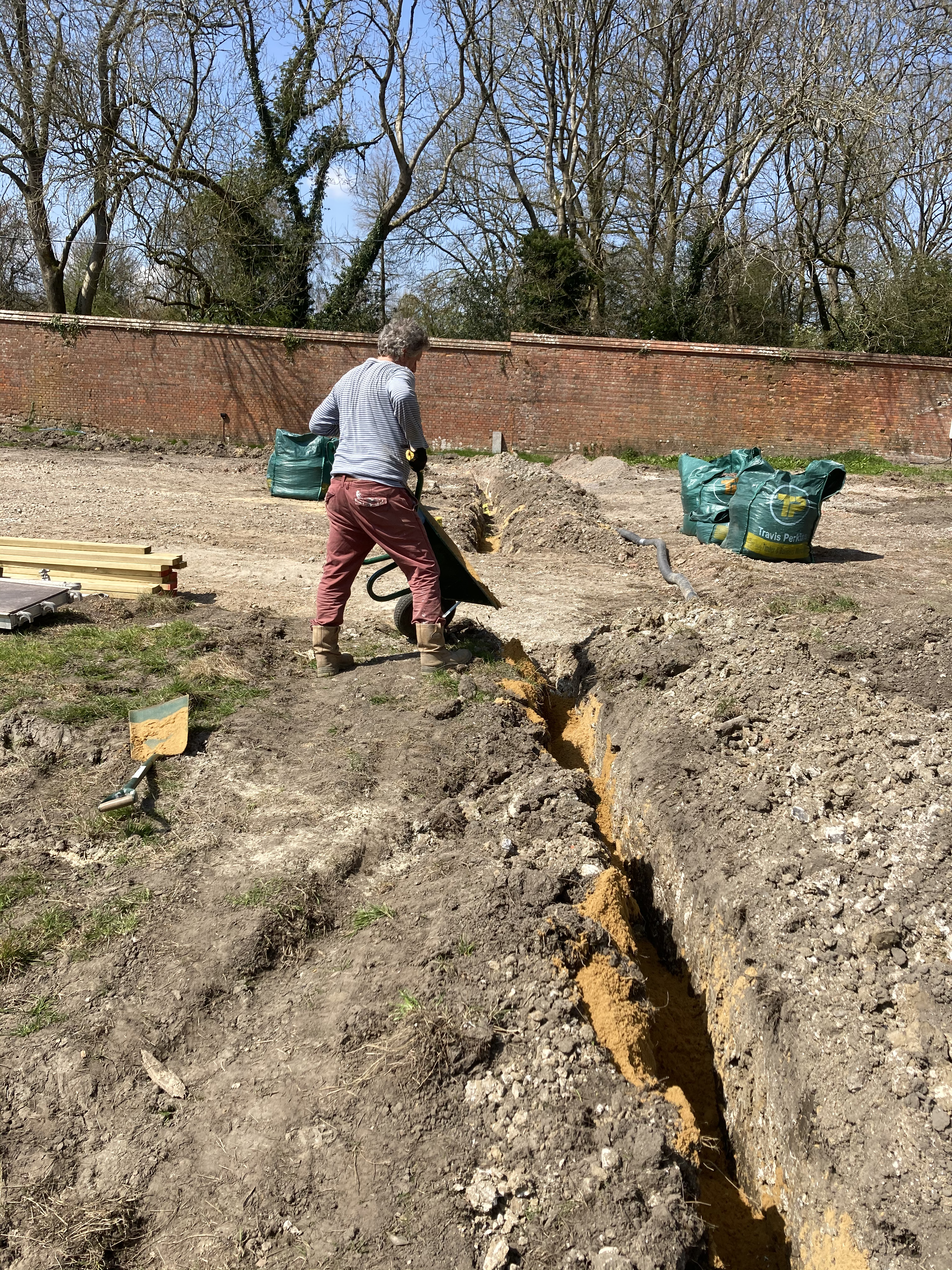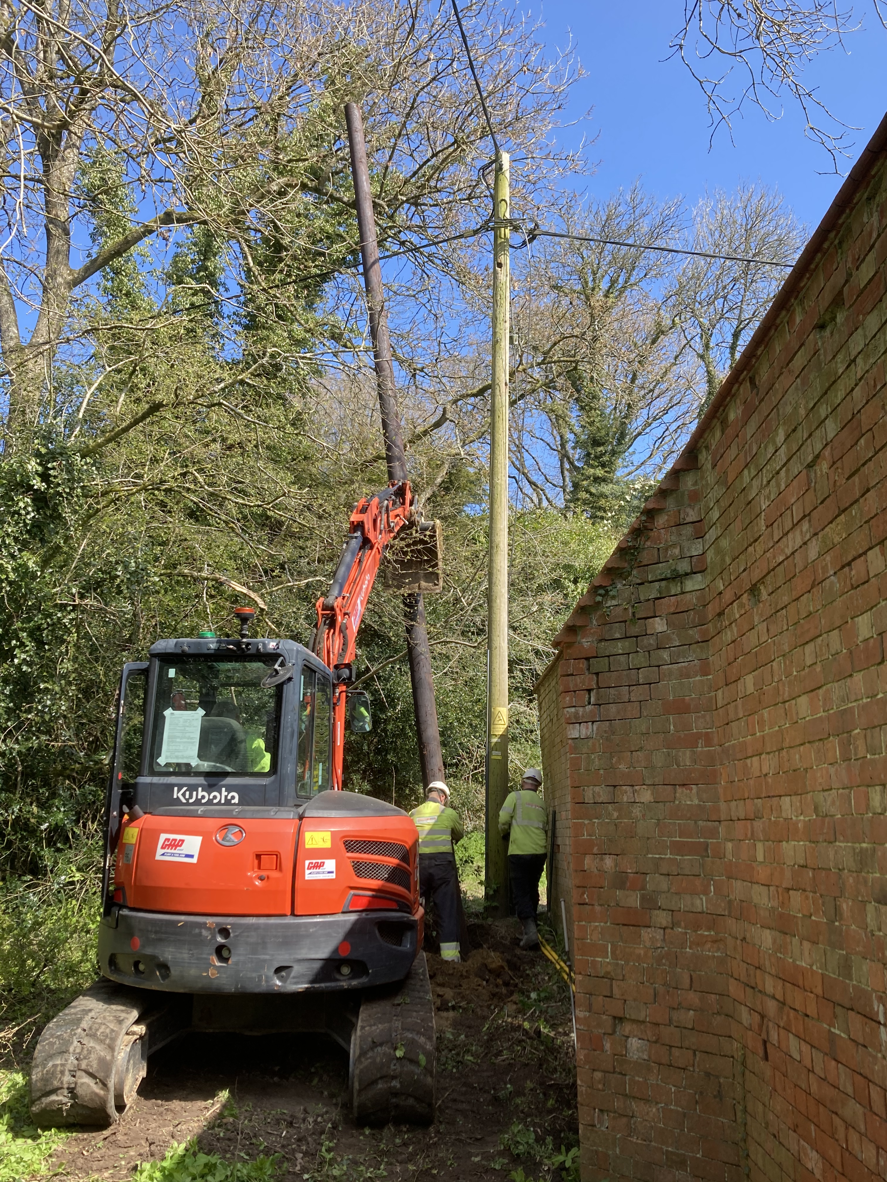 The different teams had their own tasks – laying a new cable through the trench, erecting a replacement pole and installing new stays to hold up existing and new poles. They took charge of the site and all went well, with some of them back on Thursday for the ‘switch-over’ and removal of overhead cables and poles. Most of the village will lose power for some of the day and our neighbours have worked out we’re responsible. We’ve been changing the subject a lot!