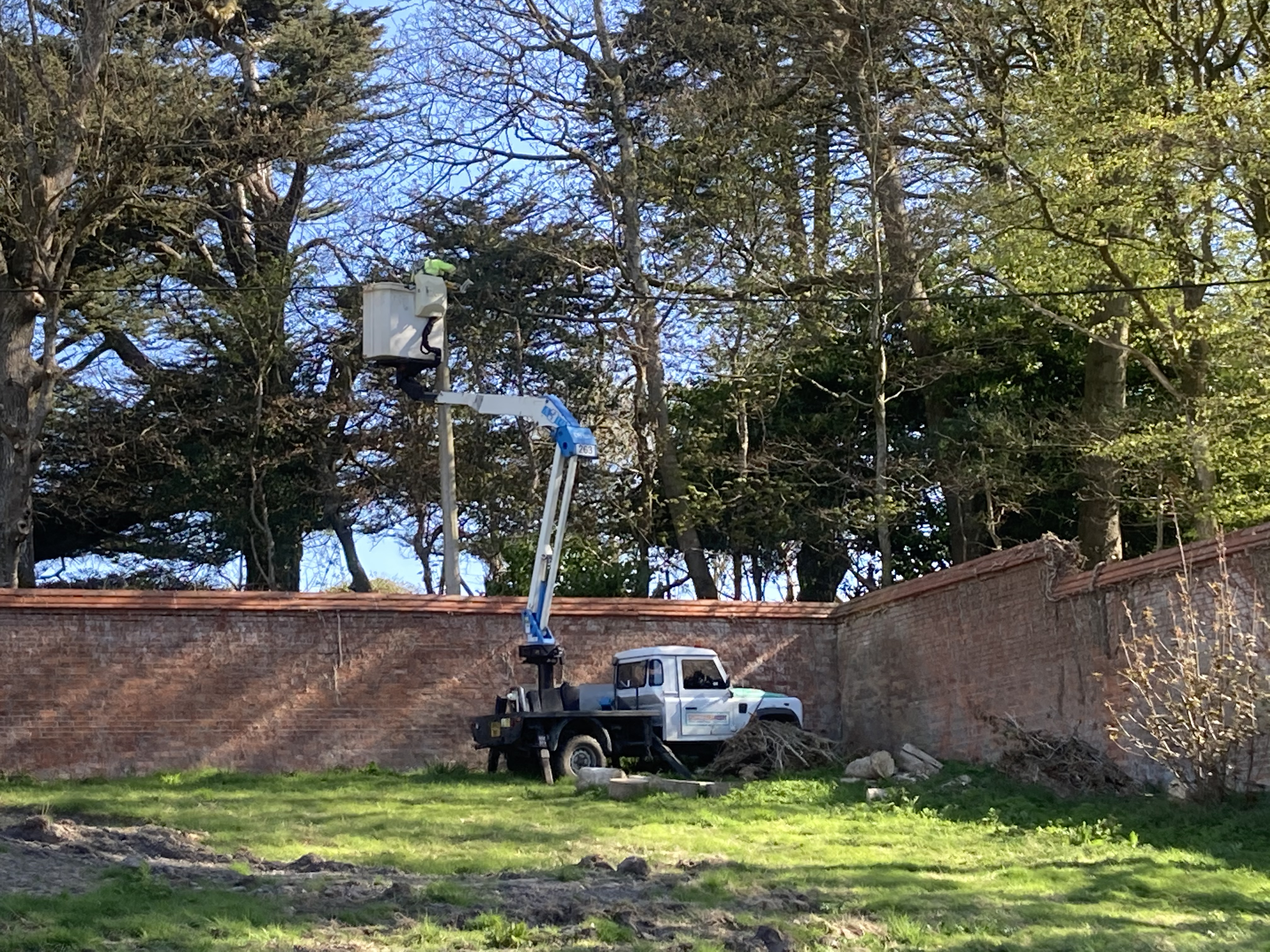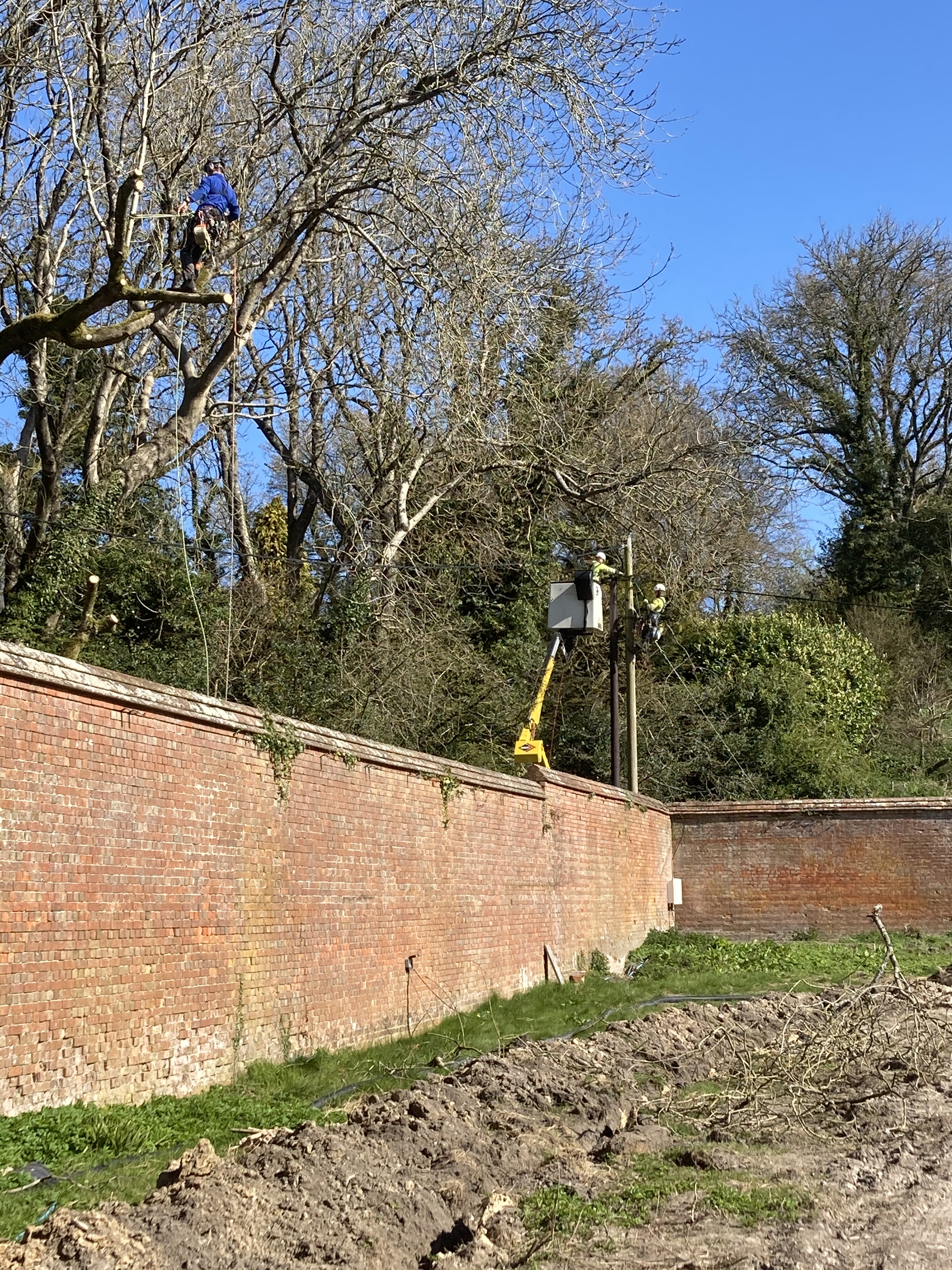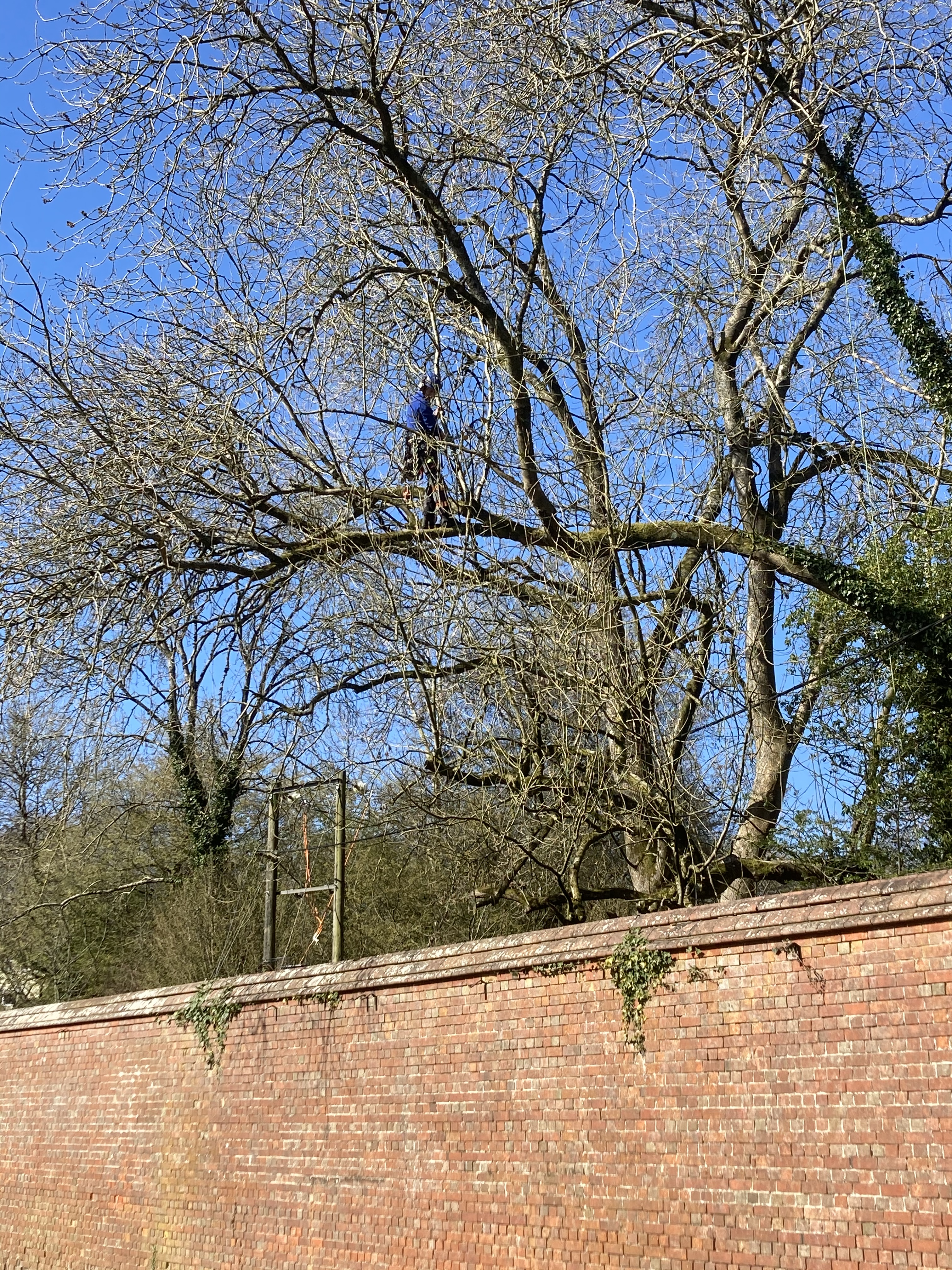 While the power was switched off the last tree surgery was done for the time-being on the trees on the western side that hang over the cables and wall. Sadly it looks like we’ll have to have Tom and the chaps back again in the next year or so – bad for the trees and our bank balance. We need to wait until June to be sure, they say, but it looks like the half a dozen ash to the north have die-back and will have to come down in due course.