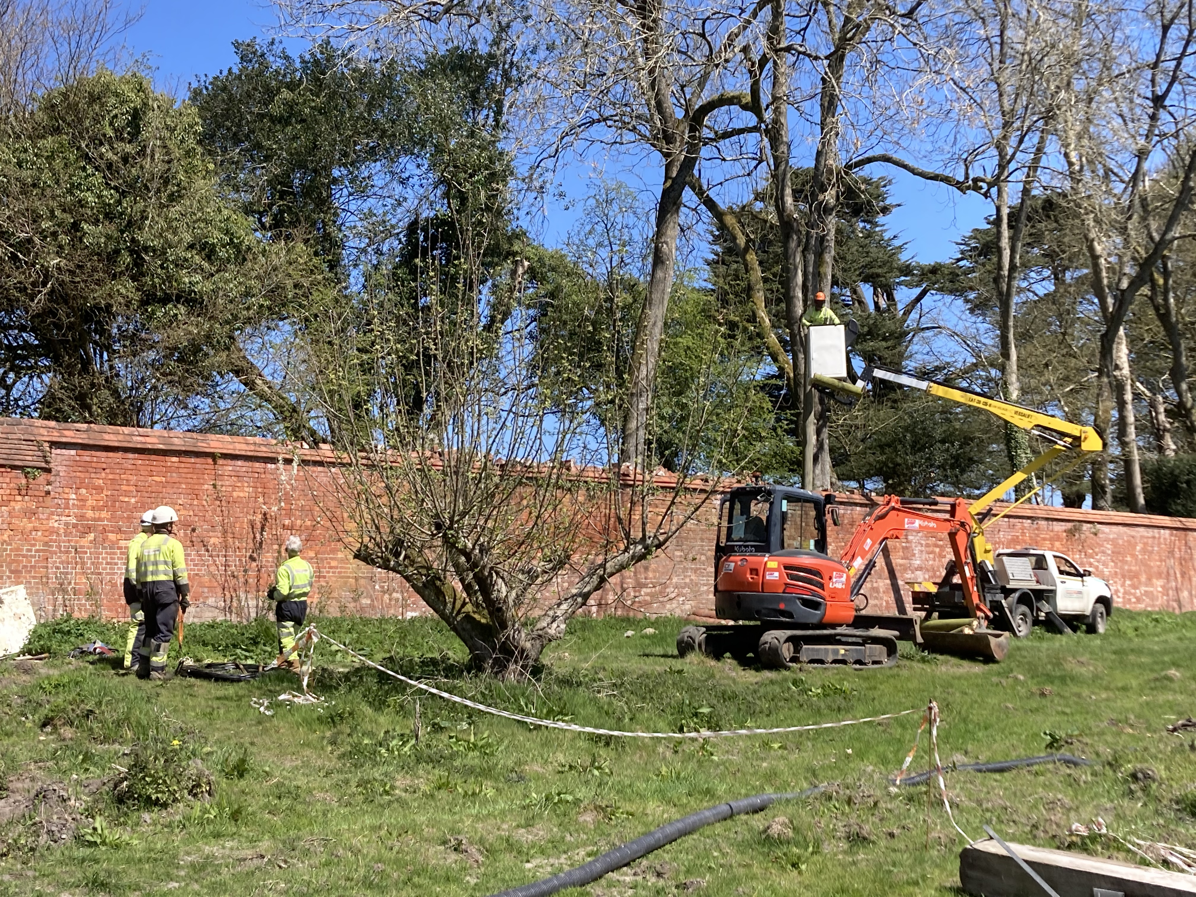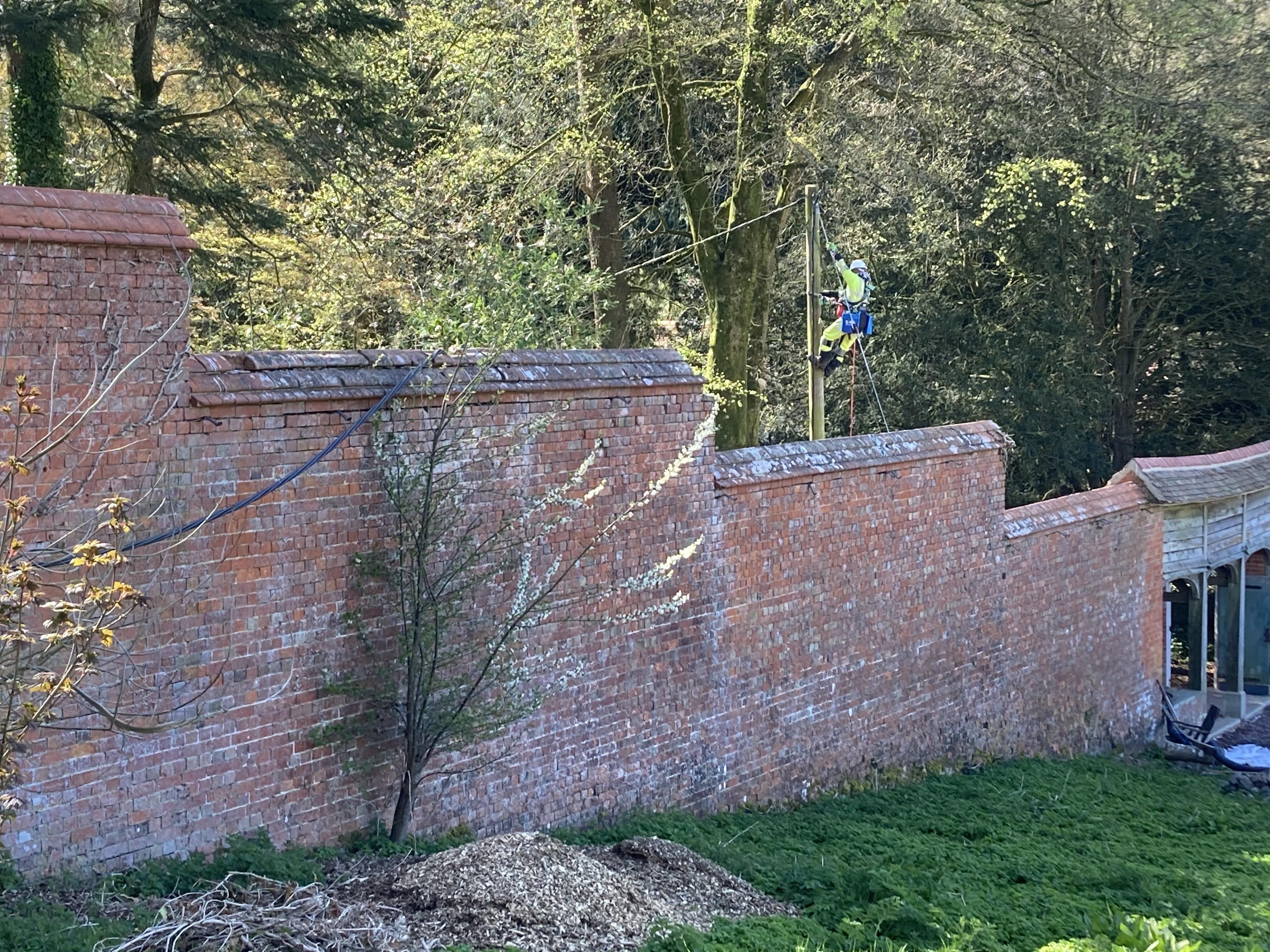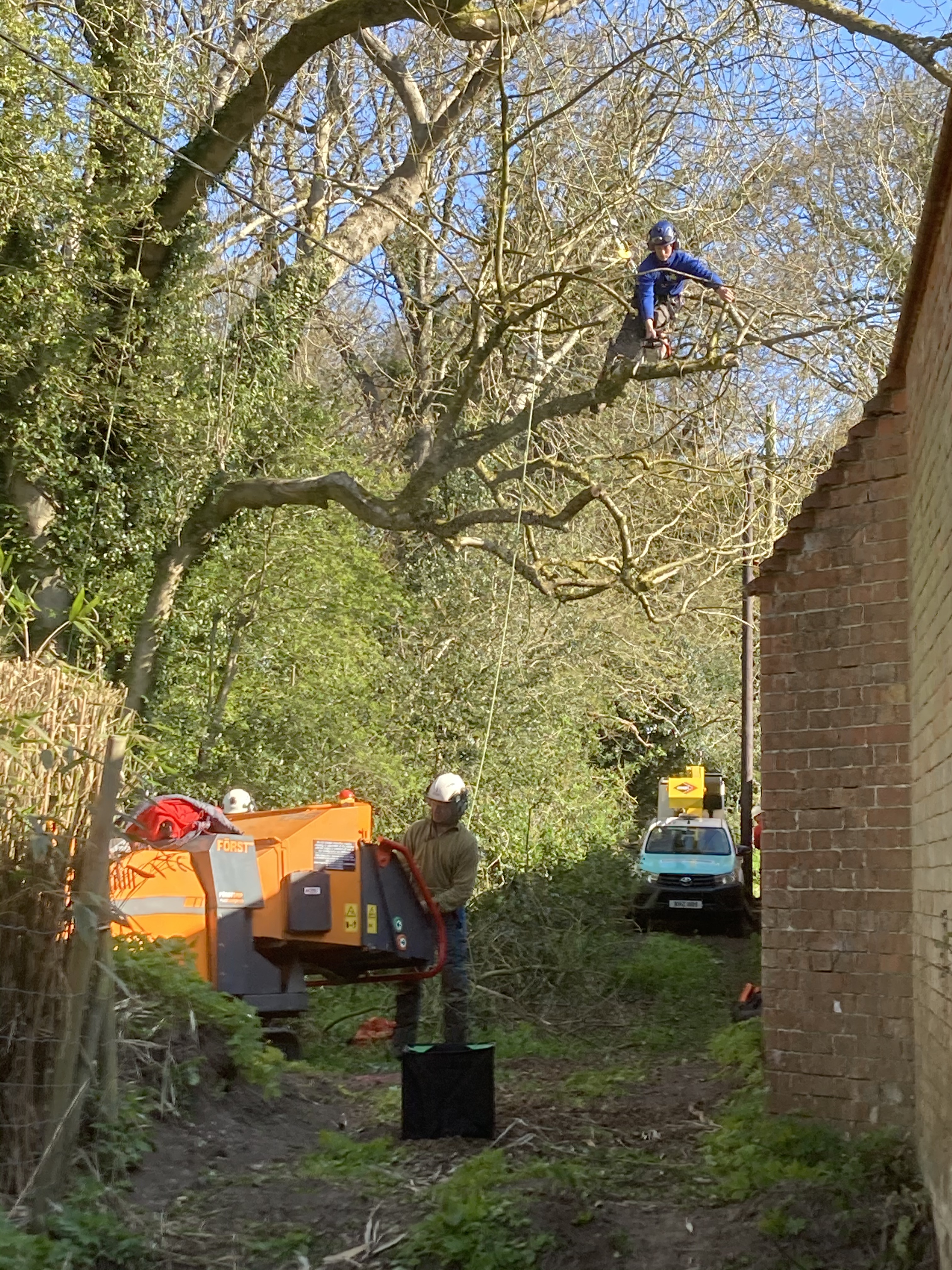 While the power was switched off the last tree surgery was done for the time-being on the trees on the western side that hang over the cables and wall. Sadly it looks like we’ll have to have Tom and the chaps back again in the next year or so – bad for the trees and our bank balance. We need to wait until June to be sure, they say, but it looks like the half a dozen ash to the north have die-back and will have to come down in due course.