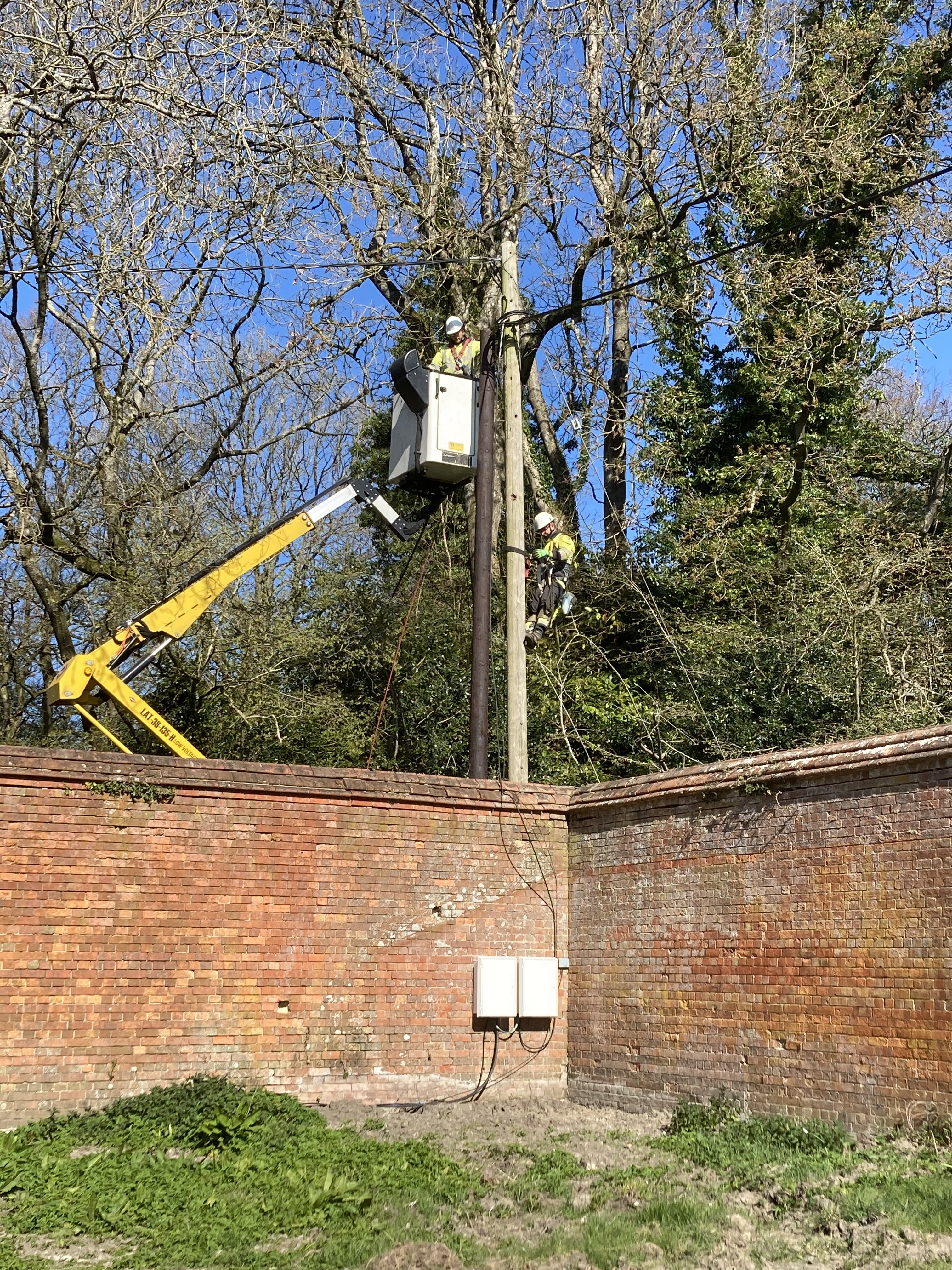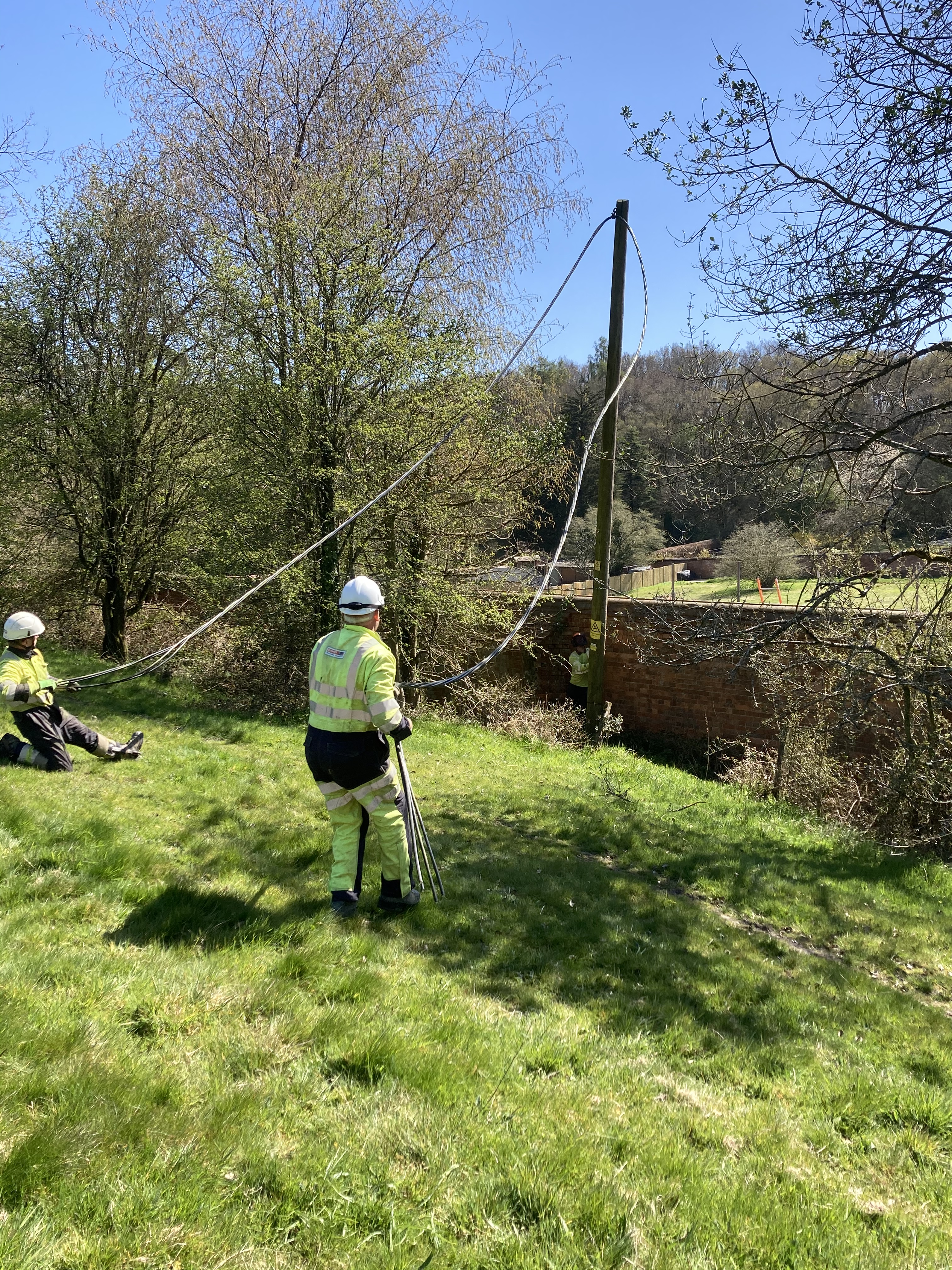 So today was the big day. Hoards of Connect IT chaps were back to connect up the two ends of the new cable and remove the redundant poles and cable. They were business-like and proficient, with numerous vehicles and bits of kit. What seemed like a big deal to us must be the equivalent of re-wiring a plug to them – the wires and fuses are just a bit bigger!