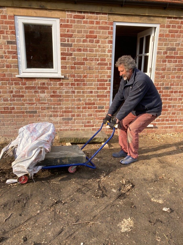 We’re finding some building supplies are scarce because of Covid, so we’re delayed by waiting for oak sleepers, aggregates and gate furniture, for example. Our favourite retail therapy is Frome “I saw you coming” Reclamation where there’s no shortage of stuff we had no idea we needed … We’ve bought chunks of York stone to use as steps, a hearth slab for the stove in the bothy, and some Dutch cheese shelves (no, really!) that will form the tops of our potting benches.