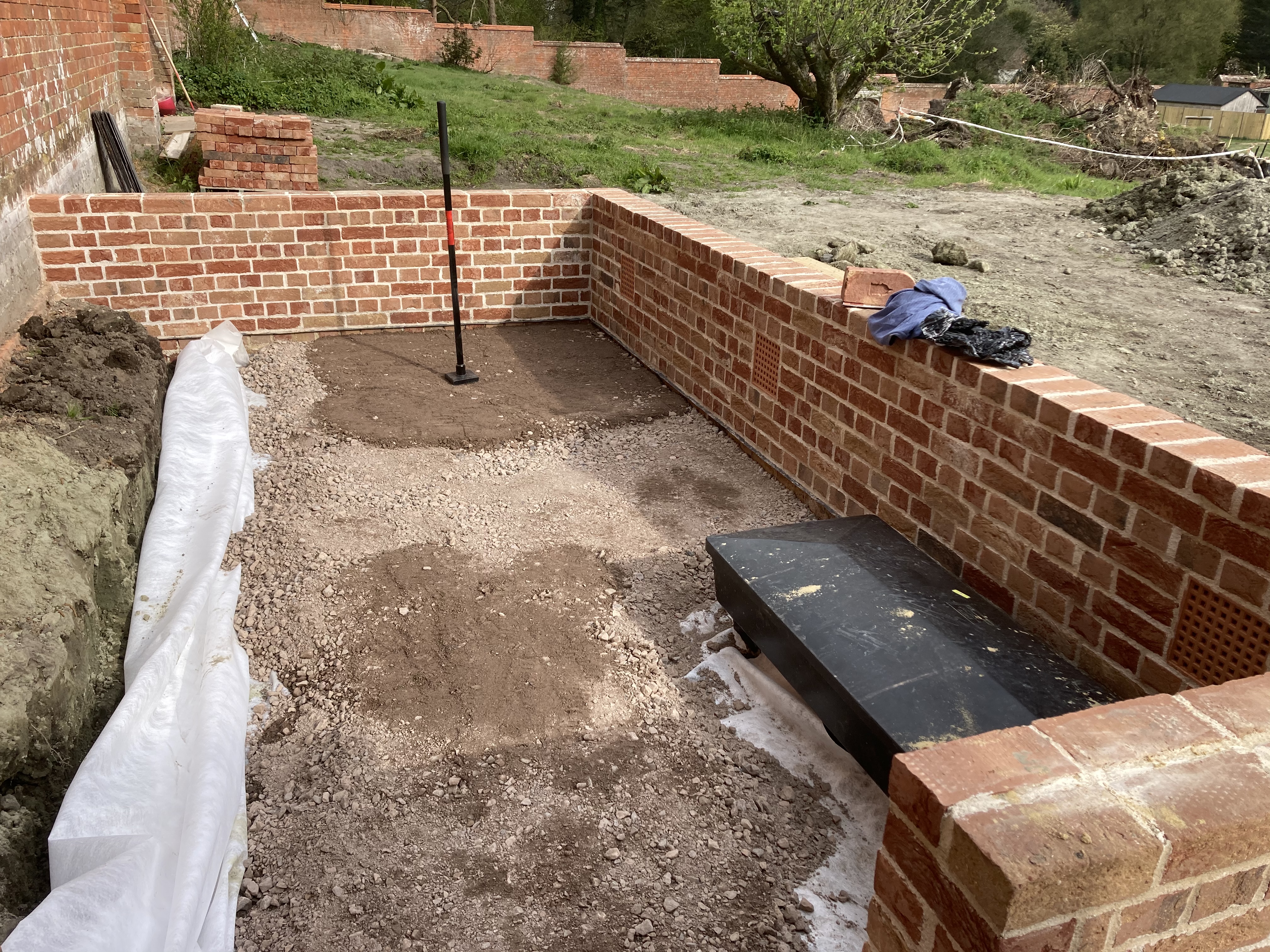 We’re making a concerted effort on some of the surfacing in and around the greenhouse and in front of the well-house. Bev’s pleased with what we’re getting done around the garden, but not unreasonably would really like one of the jobs finishing. So that might just be the well-house, where we’re laying an apron in front of it where we can put a table and chairs – the geotextile and stone sub-base are down and tomorrow we should finish the top layer of self-binding gravel.