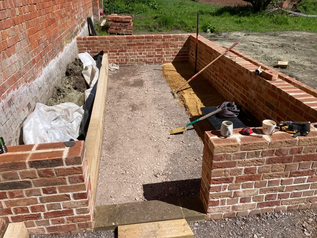 In between the endless showers this week, and yet with the occasional burst of sunshine, we’ve managed to (more or less) finish our work on the base of the greenhouse.