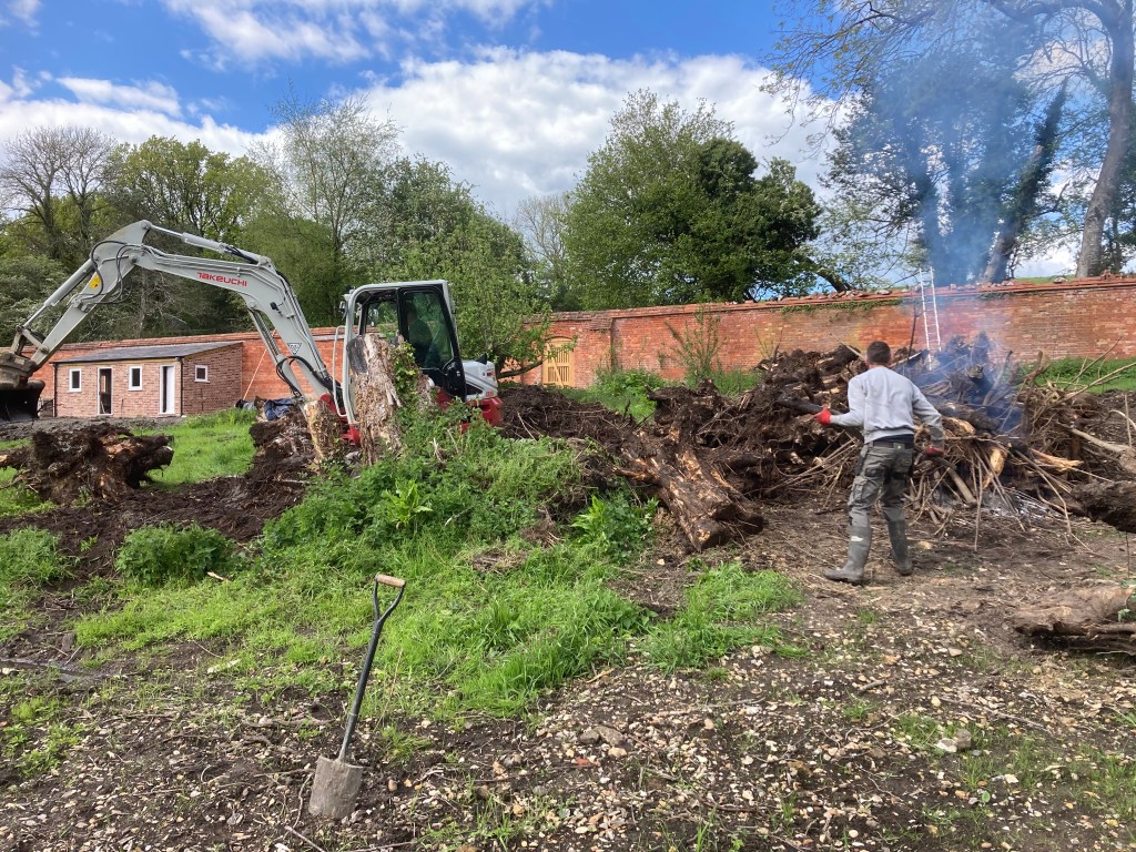 Job 3: sorting out the pile of rubbish that’s been a bit of an eyesore and separating out what could be burned and recovering earth from it. This included lots of stumps from our first clearance of the site which unfortunately are too bulky and wet to burn