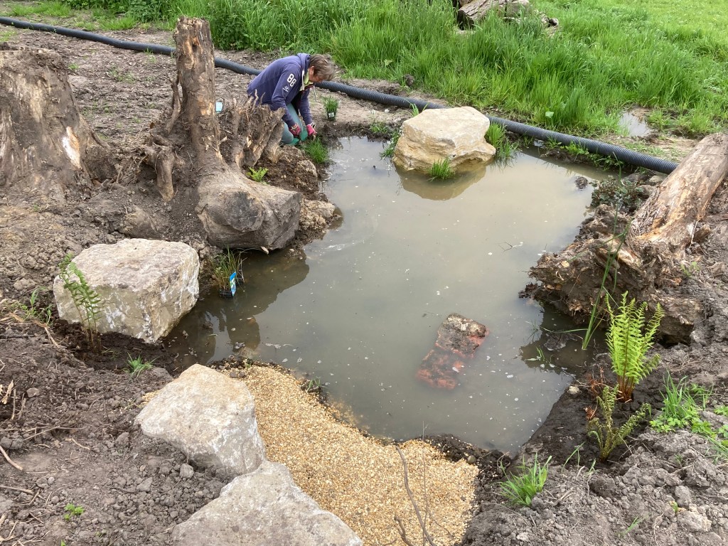 Probably of far more interest to any bats (that we do want to encourage into the garden!) is our first planting in the bog garden which we hope will become a wildlife haven and provide a reliable supply of invertebrates for them to feast on. We’ve planted ferns from Woolacombe and some marginals from the local garden centre that are new to us, such as ragged robin, lesser bullrush, cotton grass, corkscrew rush, pendulous sedge, and houttoynia.