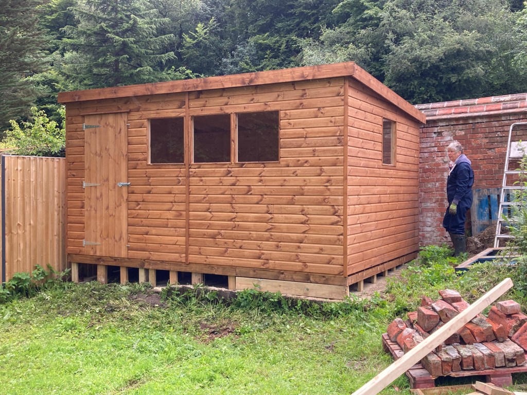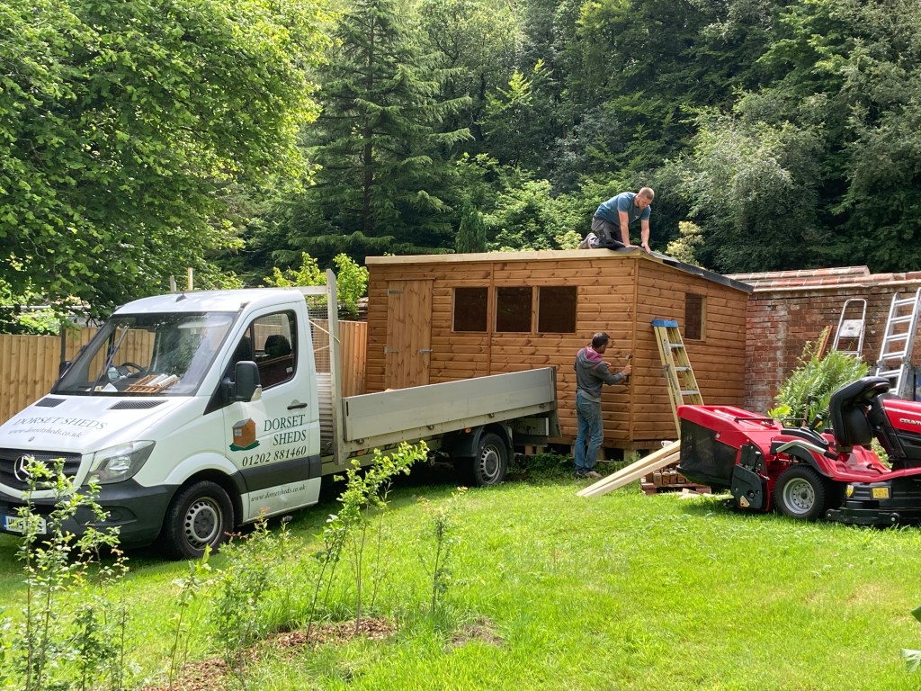 We have a messy area in the south east corner that had a bad stretch of wall damage, another unlevel hardstanding where there’d been a stable, and what had become an untidy composting area and parking place for the ride-on. Today Dorset Sheds delivered and erected our new shed that will make best use of this area. It’s taken six months to arrive but from our first impressions, it was worth the wait.