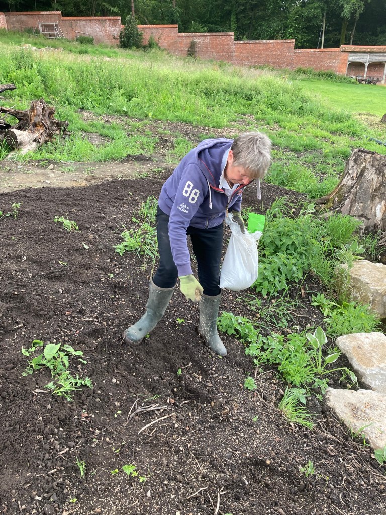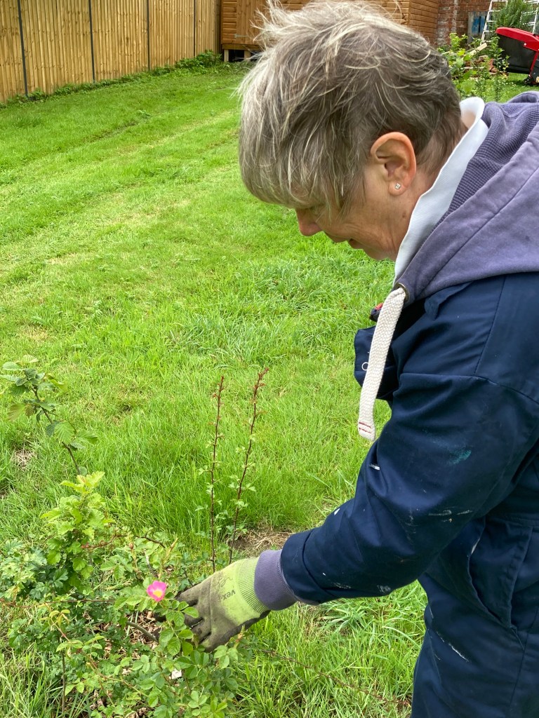 In other gardening news we’ve seeded the area above the big garden – dashing in and out between heavy showers – and we have our first dog rose flower, small but perfectly formed.