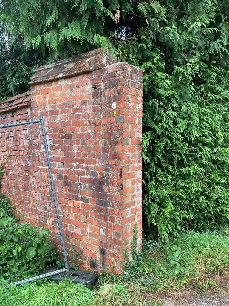 Meanwhile Lee is back for some brickwork, starting with the removal of what we suspect is a post-war addition to the wall at the main gate. The ugly plinth served no purpose and was only partially keyed into the garden wall.