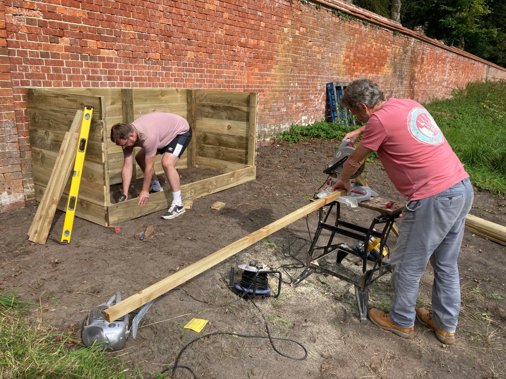 We’ve had contrasting standards of skills and craftsmanship on display over the last few days. Henry came over on Sunday to help Chris to make our first compost bins. We’ve felt slightly ashamed that our peelings and cuttings have been going in the wrong bin for nearly a year – poor behaviour for such waste enthusiasts!