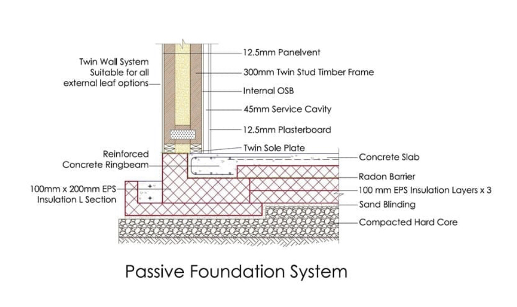 Tomorrow should see an important stride forward, with the start of work on the insulated foundation slab. For those who are interested (?!) this is how the slab is made up, showing the layers of expanded polystyrene (EPS) – yes, really, polystyrene! – that sits beneath, and insulates, the house.