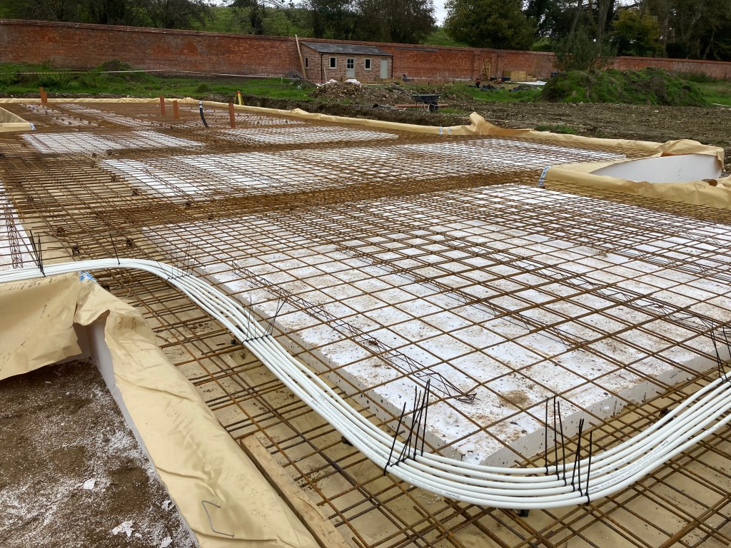 And then the underfloor heating pipework is clipped to the reinforcement: