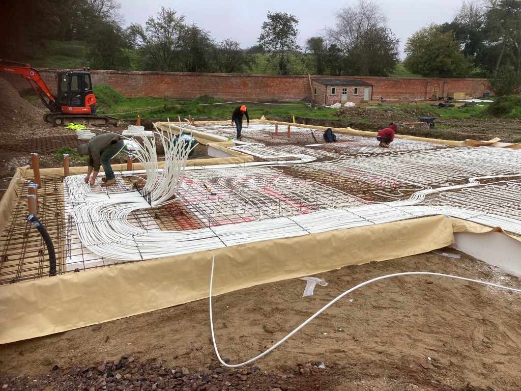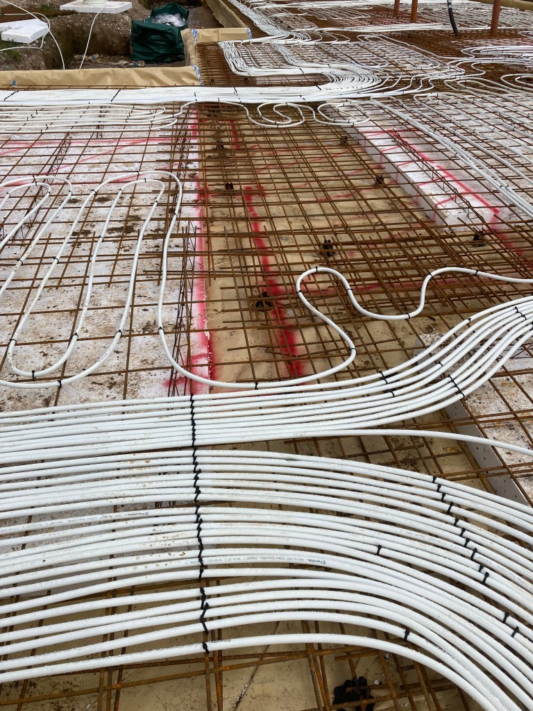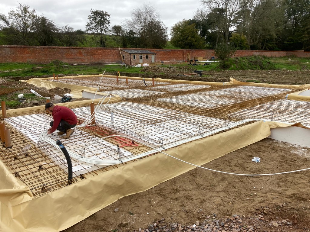 The ‘just in time’ approach means there’s little time to fit in two key tasks that we’re responsible for before the concrete pour on Tuesday. Tomorrow we have to ensure the Building Regulations inspector visits and gives us the thumbs-up that the foundations are sound and approved by him, to be concealed forever in concrete. We also have to get a plumber here to pressure-test the underfloor pipework before being encased in the concrete. Both of these things can only happen when Fergal says he’s ready. A nail-biting evening …