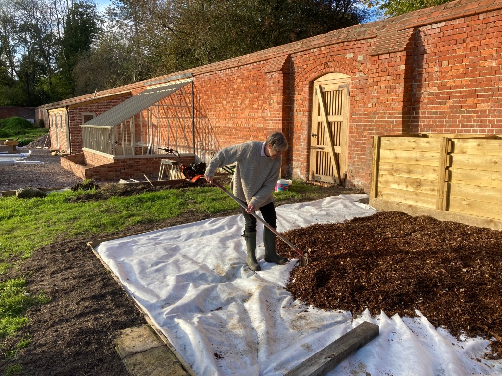 We hope you don’t think that we just sit around drinking tea watching others work hard! Bev has led the charge on finishing the compost area – we’re putting woodchips down and have ordered the plants for a holly hedge.