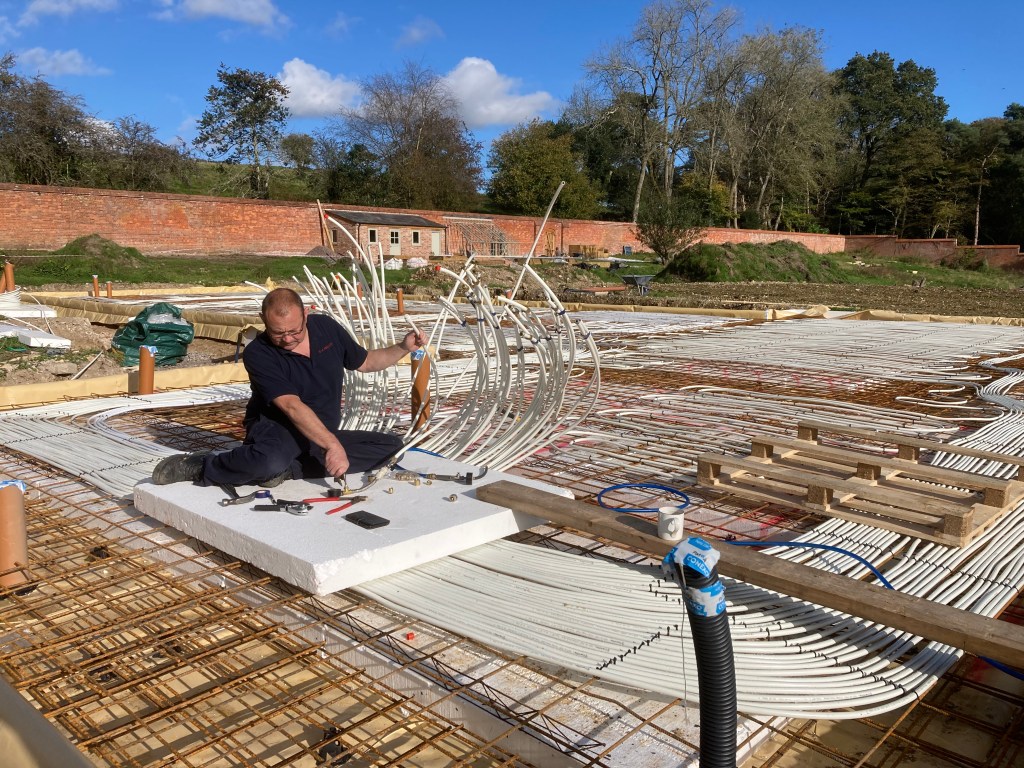 Terry the plumber arrived to do the pressure-test. He confirmed that there were signs of plenty of pressure – mainly in the vicinity of Chris … But he cheerily worked his way through the loops, regaling us with tales of his time as a firefighter and having to talk a TV celebrity being treated at Clouds House off the roof. (Can’t say here who it was, but ask Chris over a beer sometime!)
