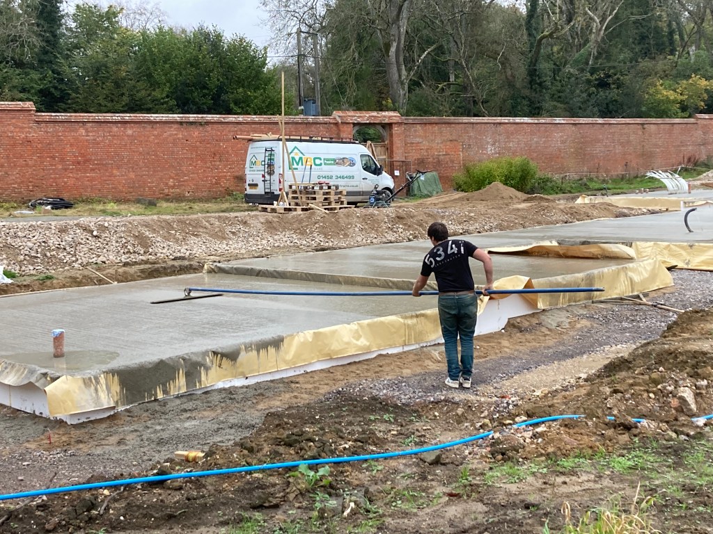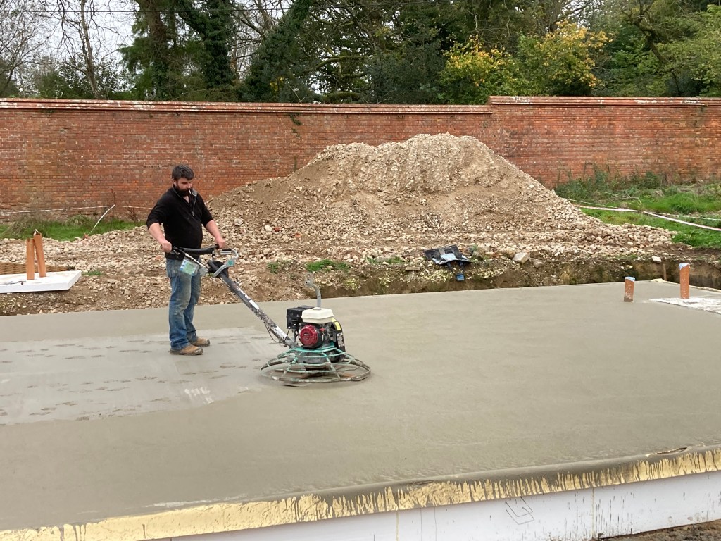 The last load came in around lunchtime but the working day went on much longer, albeit with lots of hanging around as the concrete hardened between polishes. Two of the team stayed until midnight – a shift of nearly 18 hours, when Fergal came back for a final power-float. Fortunately his midnight to 3am shift could be cut short – we lay in bed wondering what we’d say to the neighbours (and whether the bats would ever get over the disruption …)