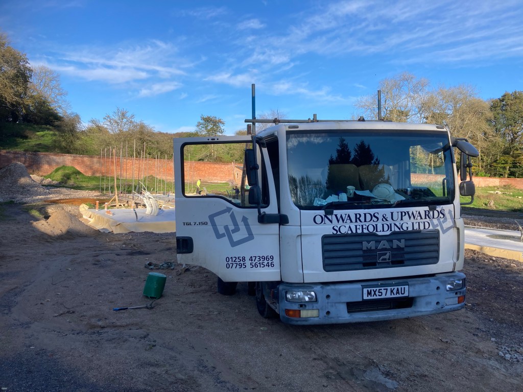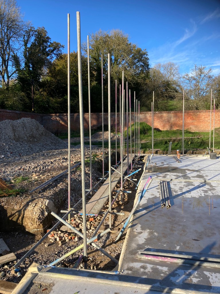 Onwards and Upwards, our scaffolders, have made a start on the scaffold which needs to be up by next Monday when the frame erection gets going. Dulcie now takes the various workmen, their machinery and the noise in her stride.