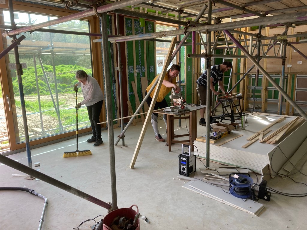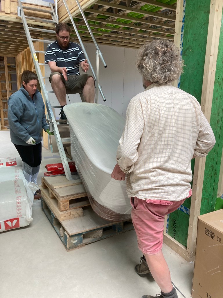 Ollie also popped over and helped with battens to pack out the plasterboard in the window reveals (successful) and moving bathroom furniture around (less successful as this is as far as we could get the upstairs bath!)