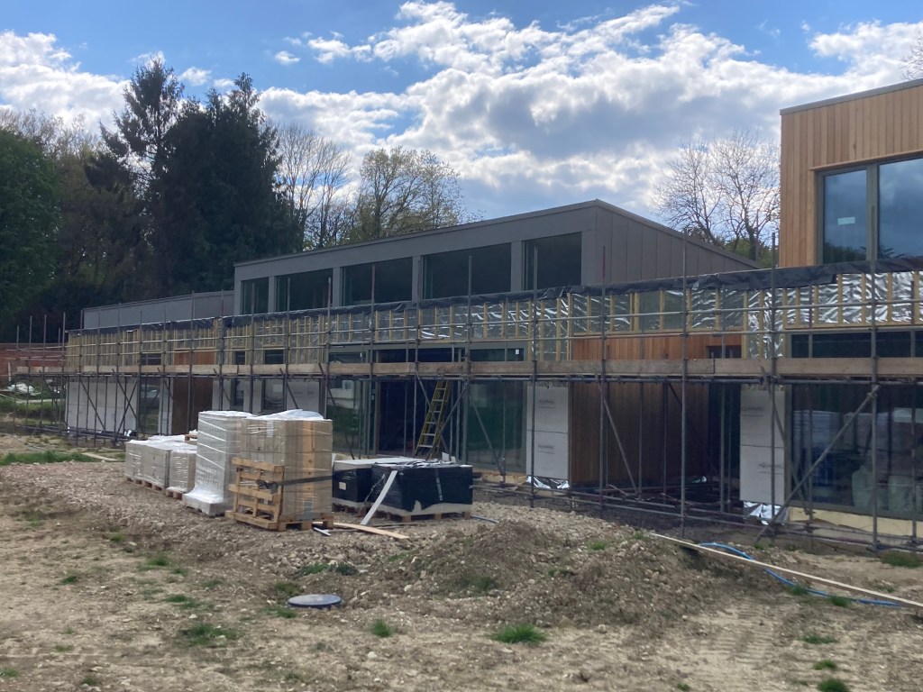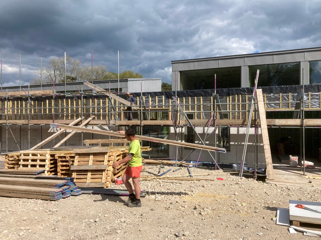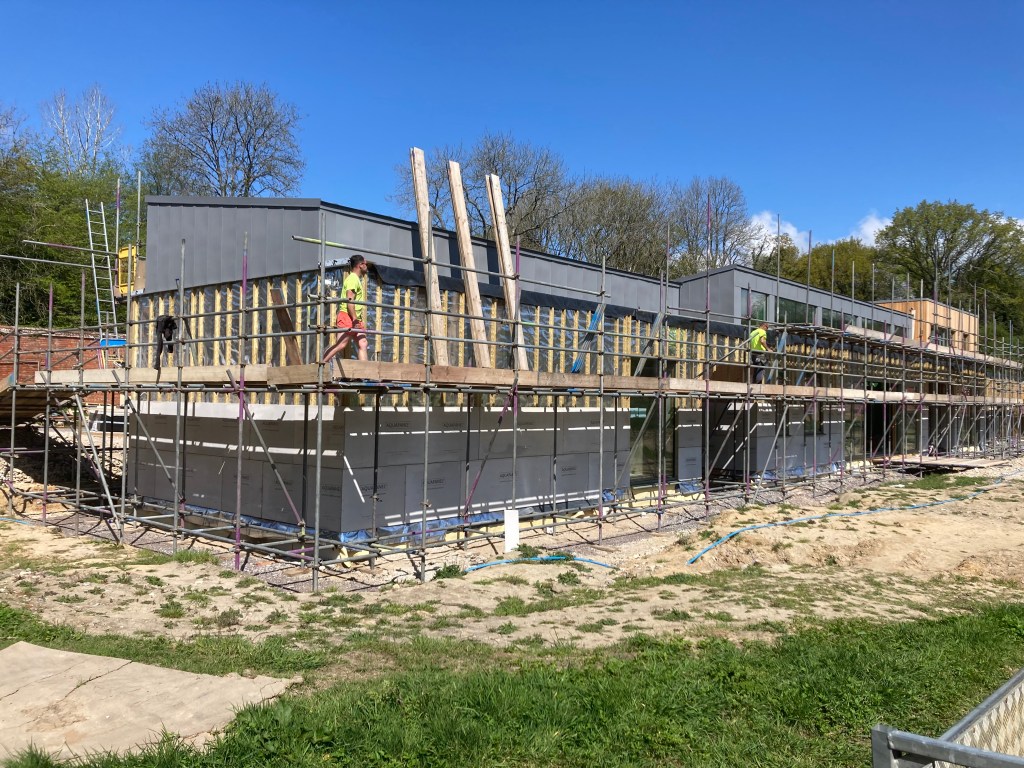 The higher level of the scaffolding has come down, and we can see more of the building and its final shape. Just need the renderboard, rendering and zinc capping on the parapets and the rest can come down. It sounds easy if you say it fast enough!