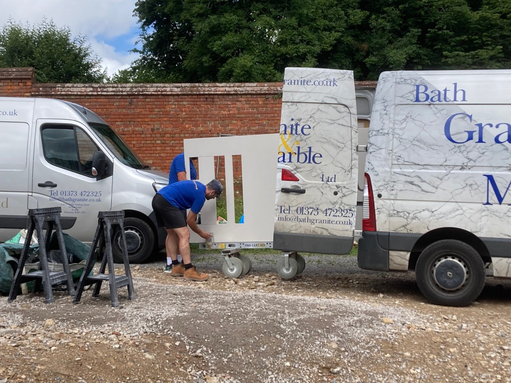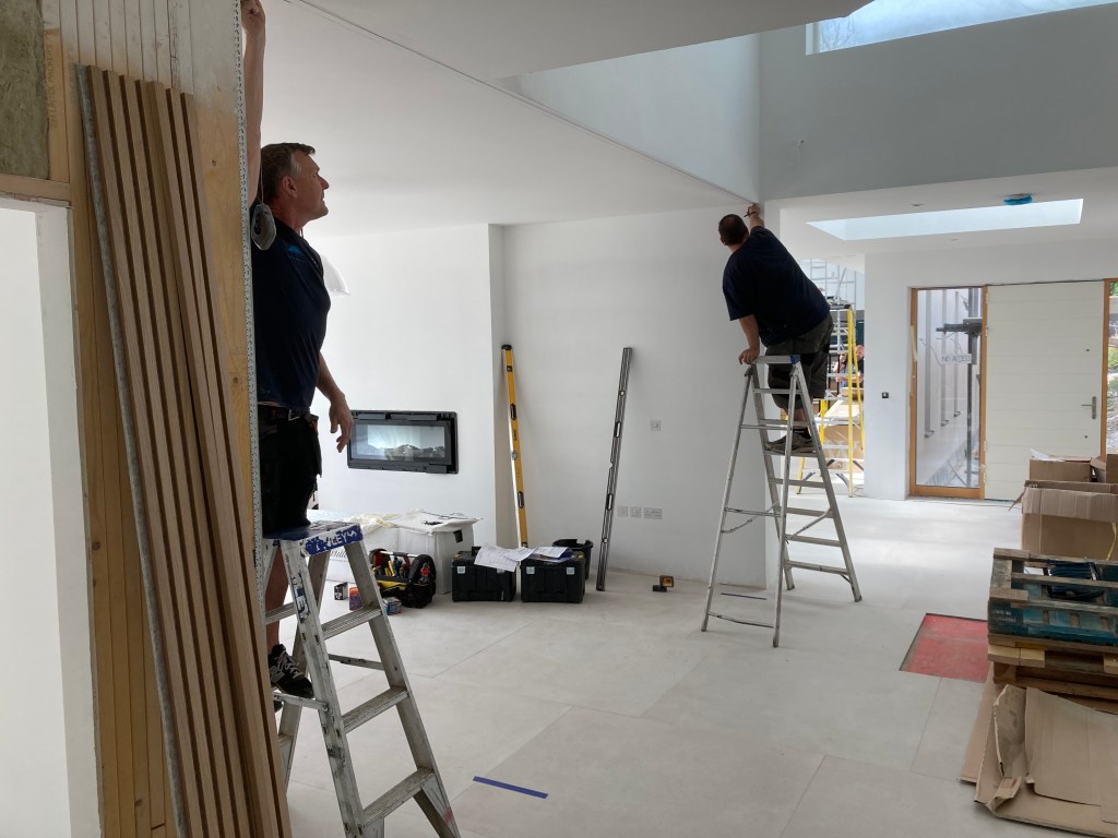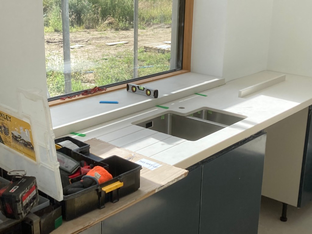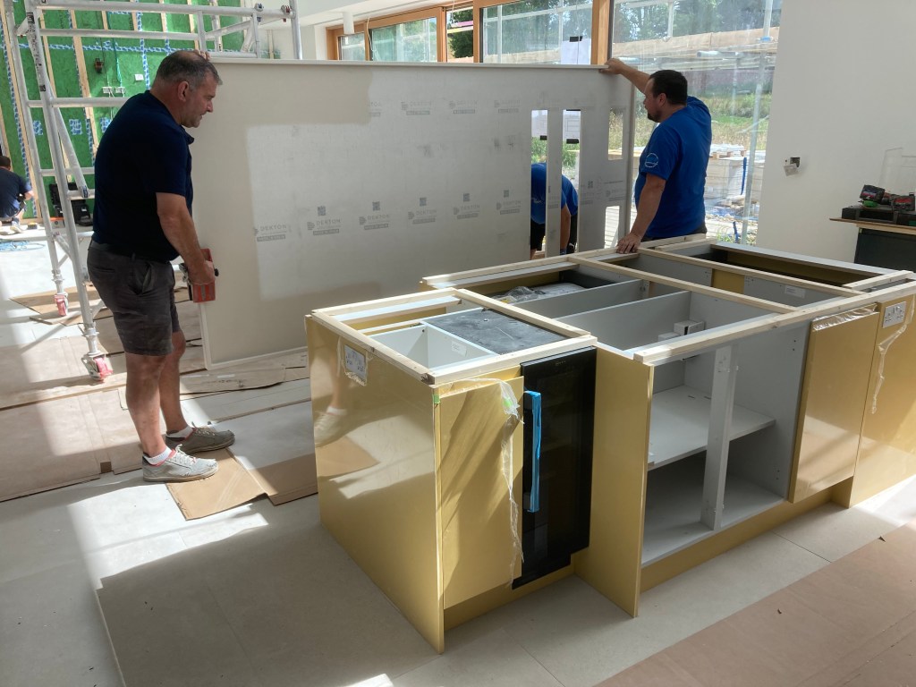 As impressively calm and efficient as the screen installation was the installation of the kitchen ‘Dekton’ worktops. We haven’t been used to things running so smoothly!