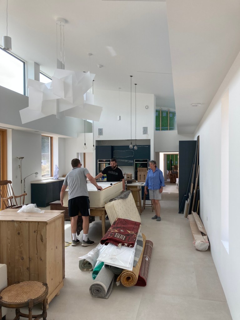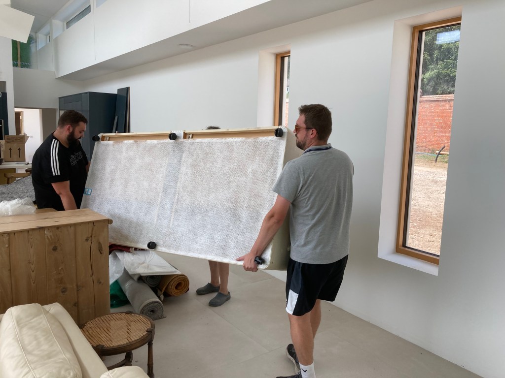 Henry and his pal, Luke, came over to reclaim some of Henry’s furniture and junk, and to kindly give us a hand moving beds into position, narrowly missing the village flower show!