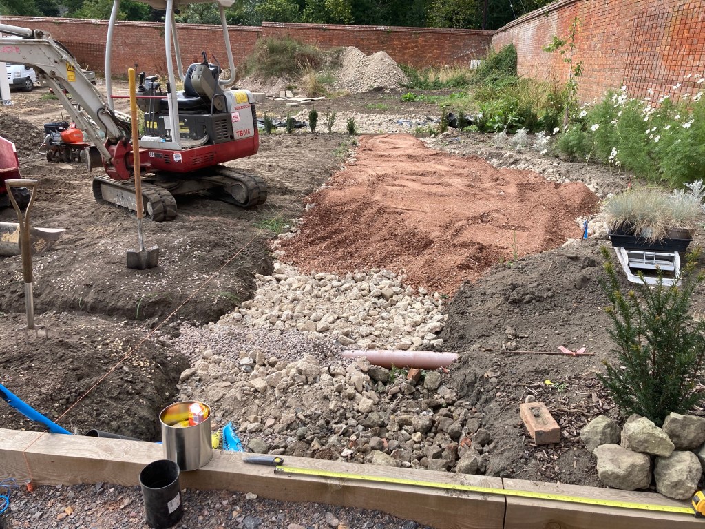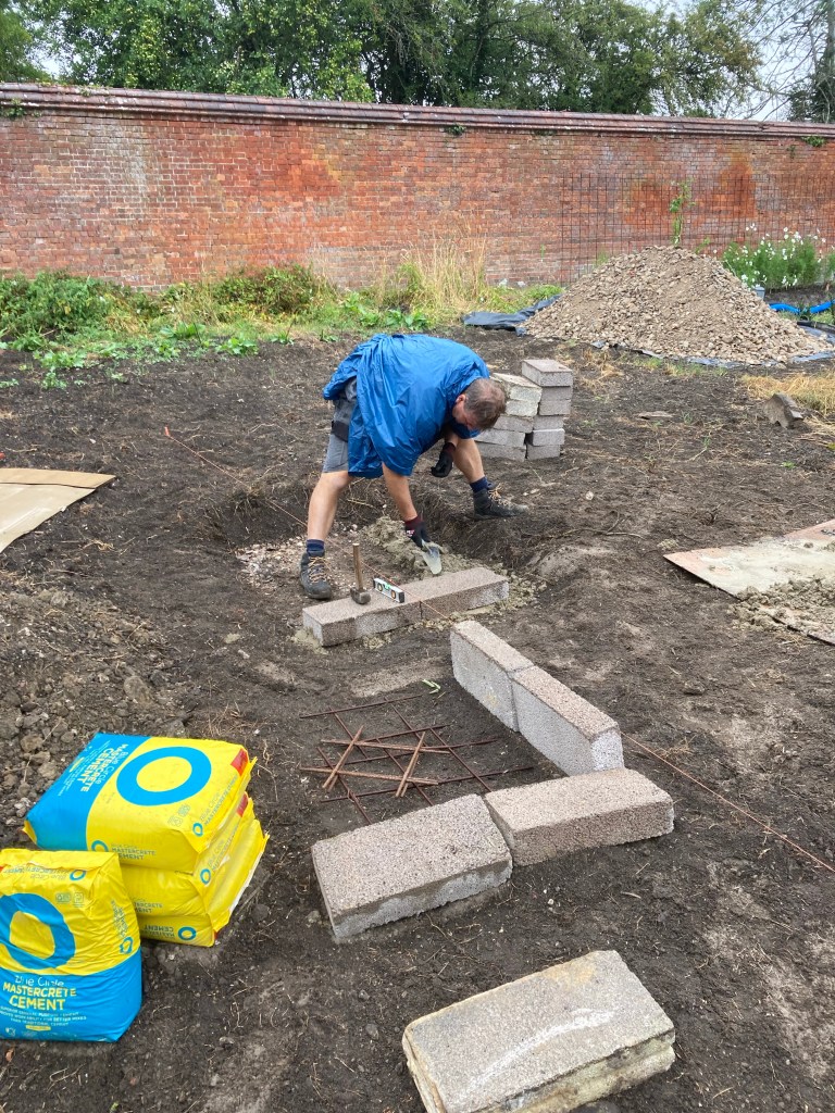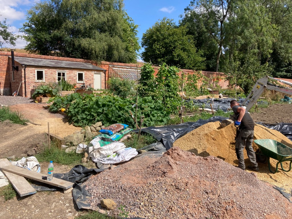 Bev has been slightly concerned at the slow progress on the paths in the veg patch and in the white garden, so reinforcements in the shape of Matt and Tristan have been very welcome this week. It’s really pushed us on.